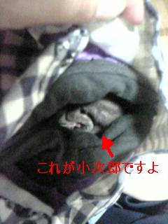 を買ってきて小次郎に食べさせようと思います。 今日、寝ているうちに寝袋ごとポーチに入れて首からさげてた。